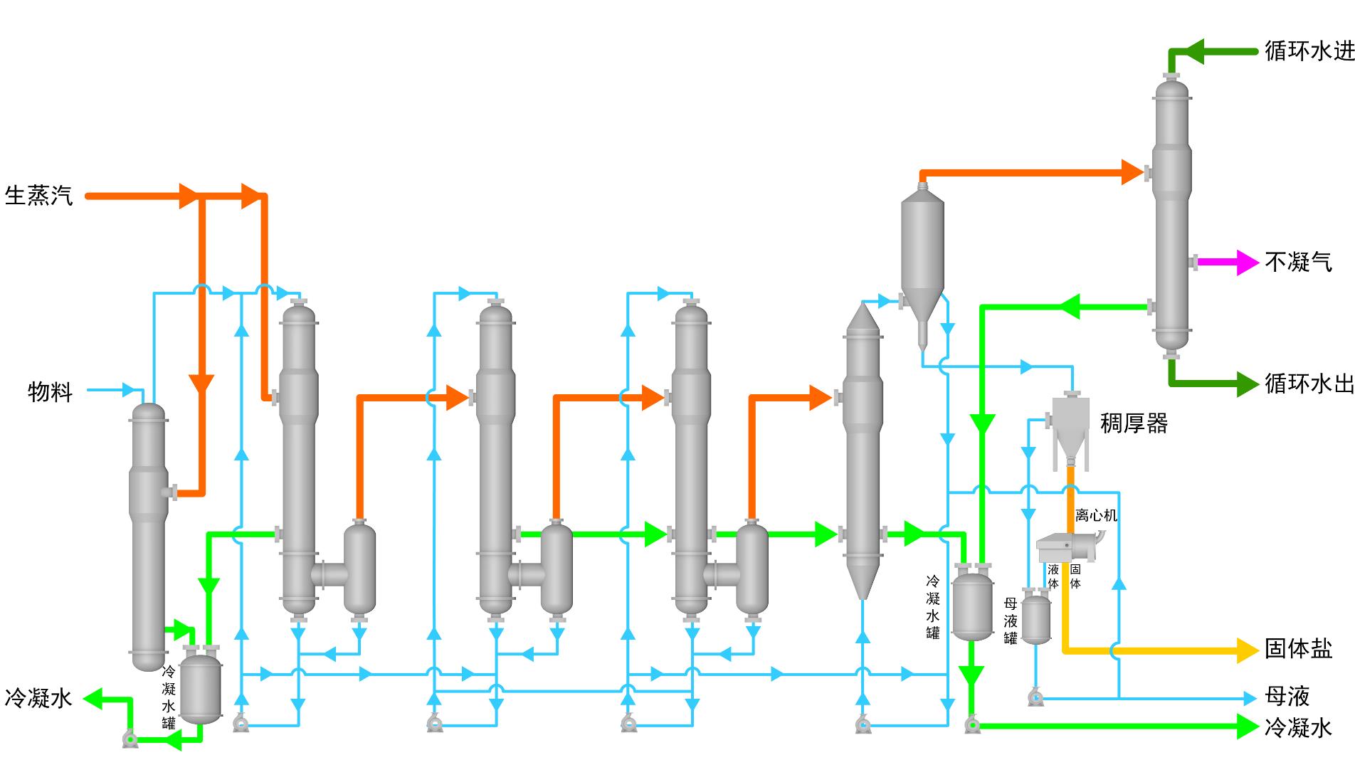 - 提高产能:多效蒸发在相同的操作条件下,可以实现更高的浓缩倍数,从而提高生产效率和产能。