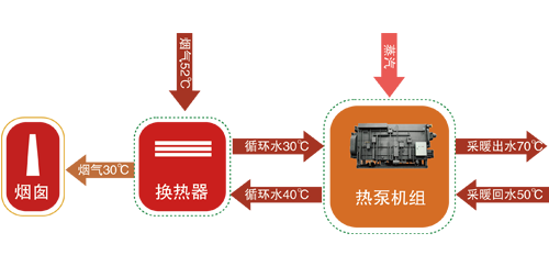 | 天然气经燃气锅炉燃烧后,产生的烟气,进入烟气余热深度回收机组,深度回收烟气中的热量使排烟温度大幅度降低,回收的热量用于加热热网回水或直接供热。 | 燃煤锅炉燃烧产生的烟气经湿法脱硫后进入换热器,深度回收烟气中的潜热与显热并降低污染物的排放,使锅炉的排烟温度大幅降低,回收的热量用于加热热网回水或直供。 | |