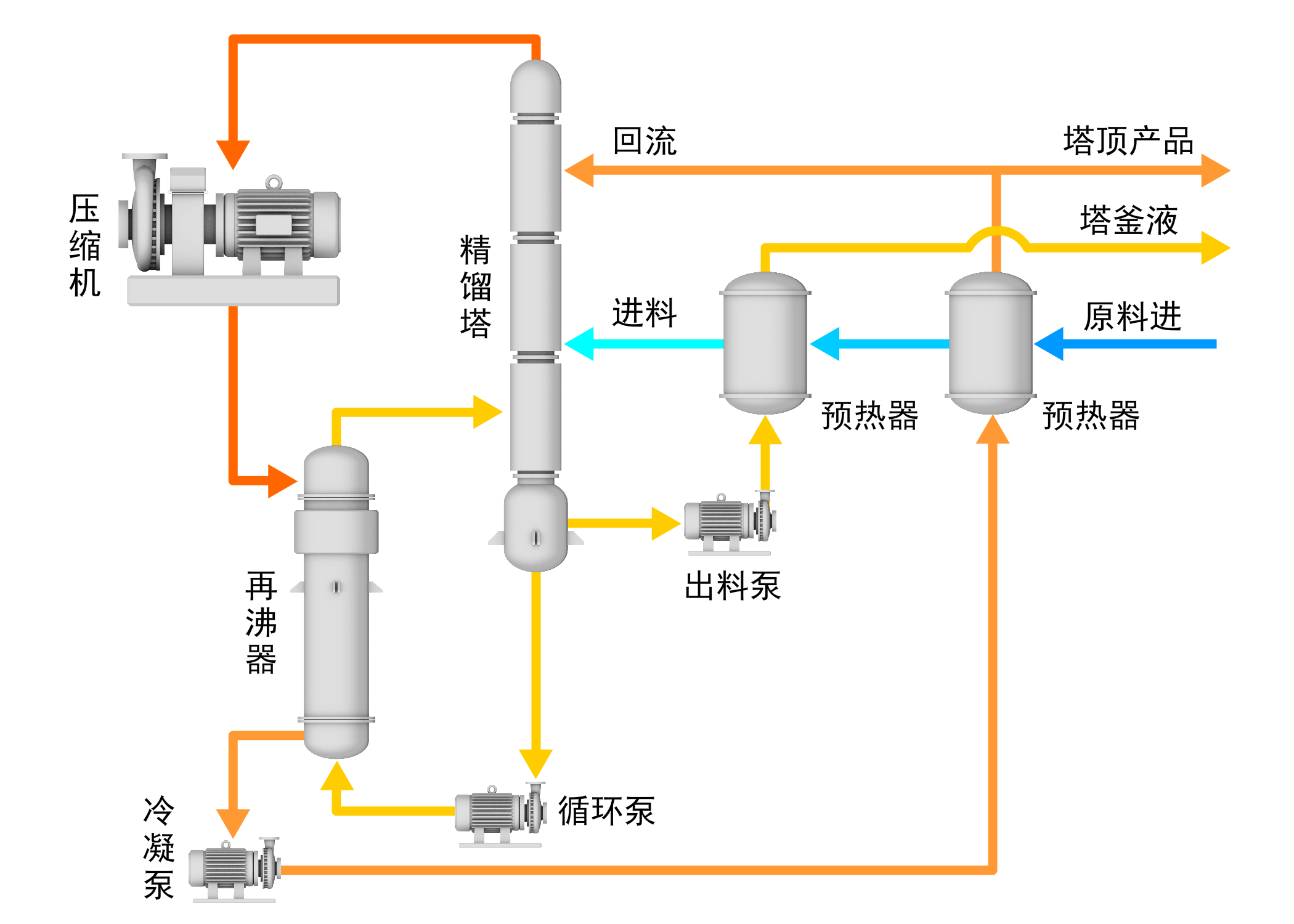 4、MVR技术可以利用少量电能回用蒸发、干燥、精馏过程的相变热,极大地降低相关工业行业的能耗和运行成本;